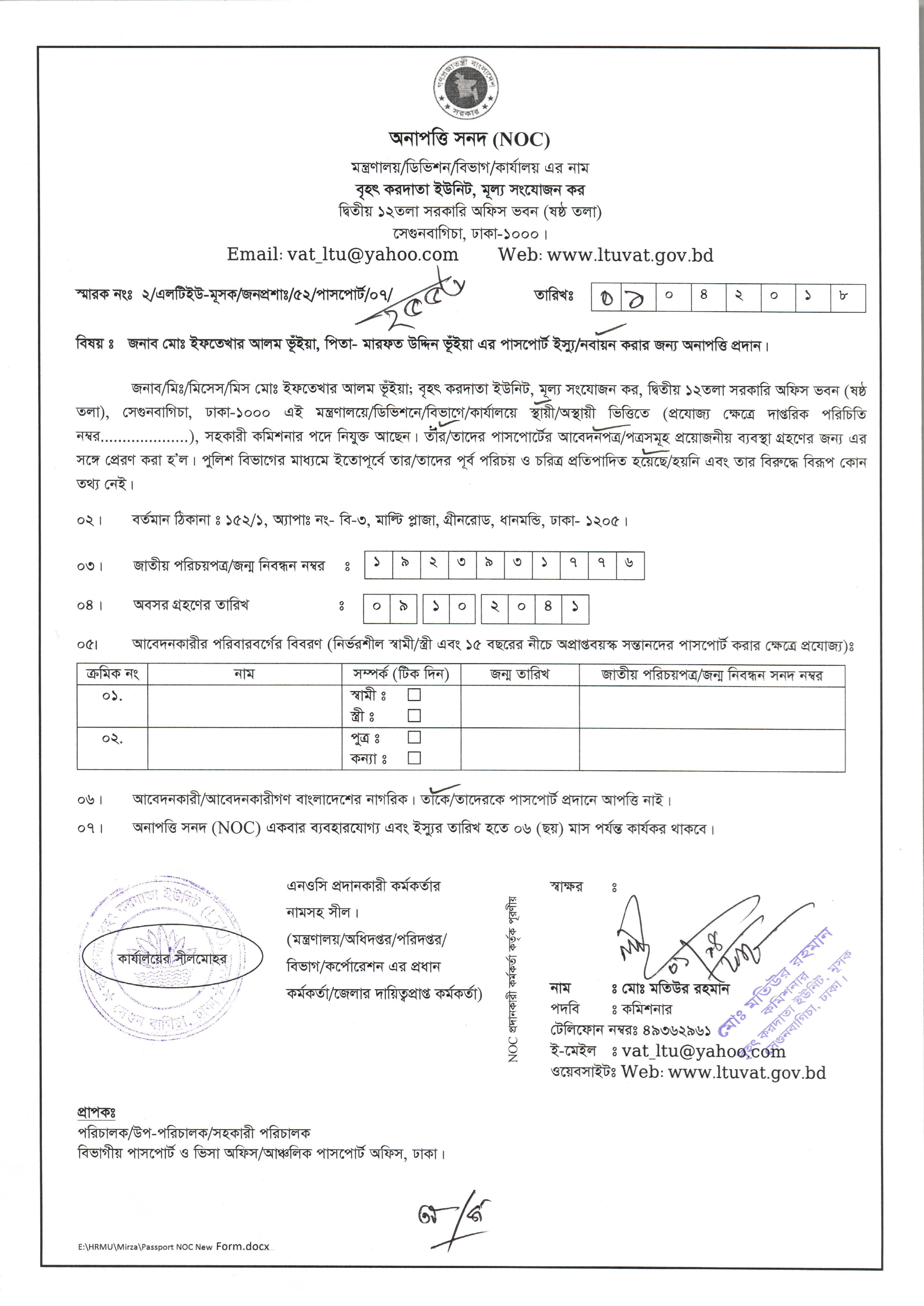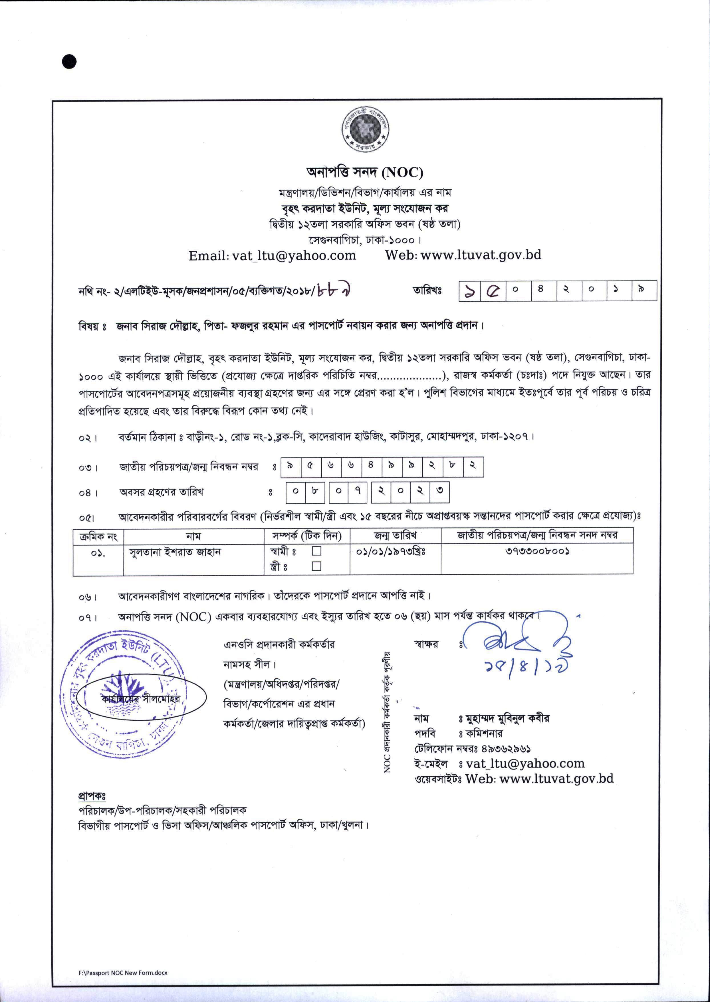 Passport NOC_07-01-2018 Mb. Mizanur Rahman