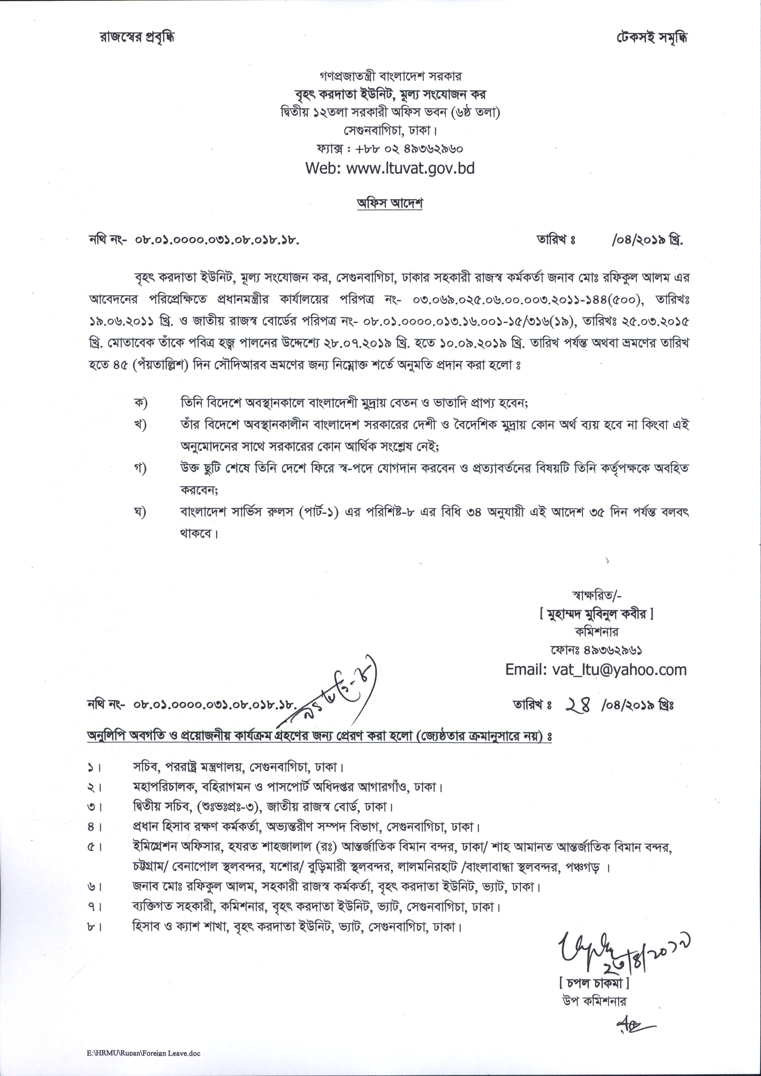 Ex Bangladesh Leave of Md. Rafiqul Alam, ARO